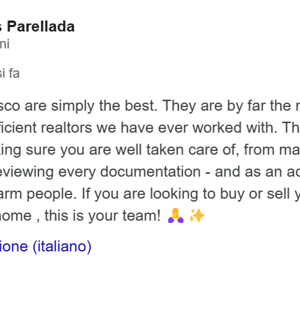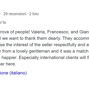 Le compravendite sono state molteplici, anche con moltissimi clienti stranieri, non ricordo neanche quante (non scordiamoci che per ben 2 anni sono stata TOP 50 tra centinaia di agenti immobiliari, quindi tra i primi posti per fatturato), ma ricordo quelle dove abbiamo iniziato a prendere in mano la telecamera e a farci lasciare LIVE il feedback dai clienti …. Sotto alcune testimonianze di clienti che ci hanno autorizzato alle nostre “prime riprese” e che abbiamo salvato convertendole in video sul mio canale YouTube perché purtroppo molte sono andate perse o cancellate erroneamente perché non pensavamo essere girate bene, con luci giuste o telecamere adeguate per tenerle. Forse con il senno di poi le avremmo potute tenere e caricarle così com'erano perché comunque restano e sempre resteranno parte di storia lavorativa. Indipendentemente dalle riprese in tantissimi ci hanno anche scritto ringraziandoci in mille modi, con e-mail, con sms (alcuni con le nostre immagini hanno persino creato una bellissima torta che è rimasta storica e che riporto di seguito in foto …..) e onestamente ripercorrere tutto lo storico di anni mi è veramente complesso ma indubbiamente il mio GRAZIE DI CUORE A TUTTI è, e rimane, quantomeno doveroso !!!! I commenti e i ringraziamenti dei clienti nei video o nelle dirette sono la testimonianza di quanto detto e se avete tempo di ascoltare credo che inconfutabilmente possiate essere d’accordo con me quando dico che E’ VERO e non certo costruito come in molti siti o molte pagine Facebook, che il mondo funziona per testimonianze e non per false Testimonianze.